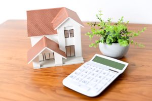 家の模型と電卓の不動産イメージ
